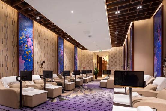 项目经理王栋告诉我们,通过大样先行,反复推敲和研究,加上利用可调挂件进行局部微调,最终得以保证顶面造型安全牢固,金螳螂人思虑周全,施工质量和安全始终摆在第一位。哪怕是灯光效果,也反复演练推敲,从施工角度提出专业建议,力求最终达到设计效果,严谨负责的态度得到了甲方的一致好评。