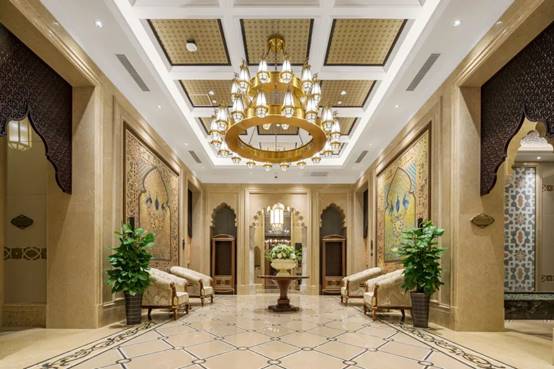 五种不同风格的装修,导致空间类型多样且零散,造型不仅复杂而且施工难度很高,光使用的面层材料就有上百种,公司大工管平台积极整合材料资源,协助项目部克服重重困难,将所有选材采购到位。