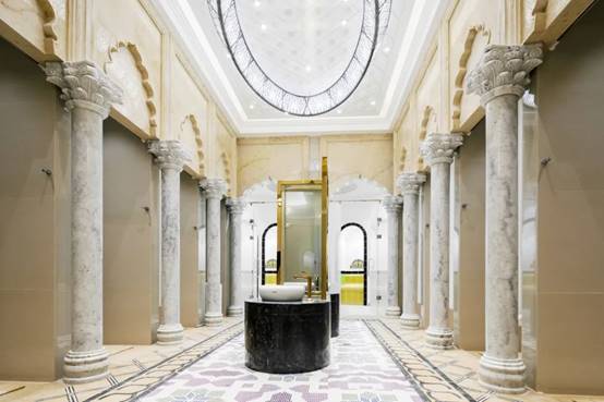 项目团队积极与设计方沟通,力求用项目选材和施工工艺,来高度还原各式温泉特色,日式温泉有樱花园和枯山水山丘,营造出浓浓日本泡汤文化;北欧建筑风格和北极岩石打造出极地特色的芬兰温泉馆;土耳其神秘温泉湾的主馆是伊斯兰特色建筑,室外也高度还原了棉花堡、卡帕多奇亚地貌,更有代林库尤地下长城的微缩版,令游客仿佛瞬间置身异域风情中。